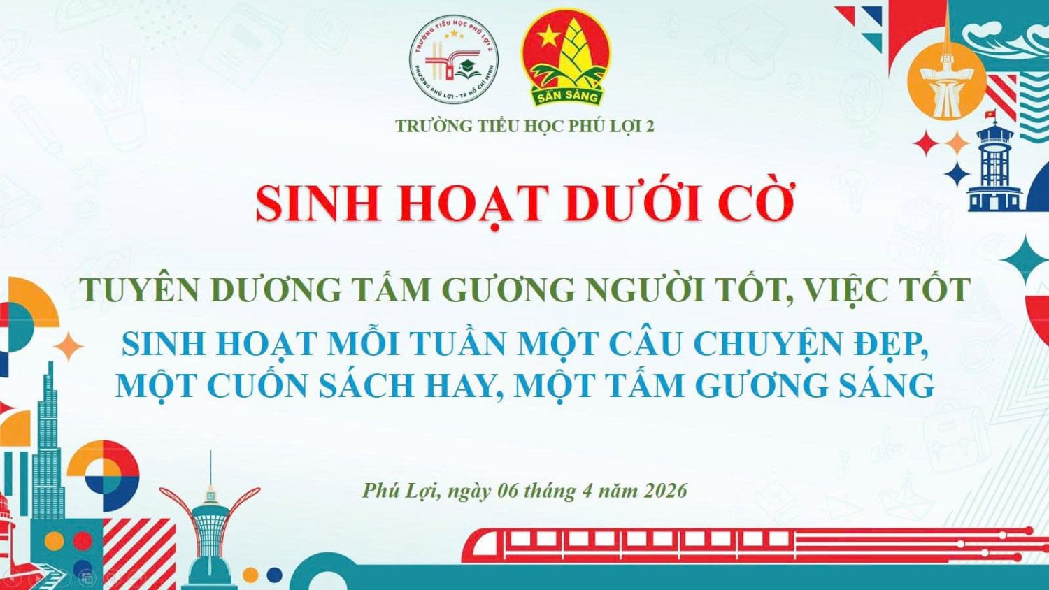 Sáng ngày 6/4/2026, Trường Tiểu học Phú Lợi 2 long trọng tổ chức chương trình Sinh hoạt dưới cờ. Đây là hoạt động giáo dục quan trọng, bồi dưỡng lòng yêu nước, tự hào dân tộc cho học sinh. Với sự đa dạng về hình thức và nội dung, “ Sinh hoạt dưới cờ” đã thực sự tạo sân chơi bổ ích, mang lại nhiều hứng thú cho học sinh. Hoạt động này không chỉ giáo dục đạo đức, rèn luyện kỹ năng, giúp các em bộc lộ năng khiếu, tự tin tham gia các hoạt động tập thể mà còn góp phần quan trọng vào việc thực hiện mục tiêu phát triển toàn diện phẩm chất và năng lực của học sinh theo tinh thần của chương trình giáo dục phổ thông mới. Chính vì lẽ đó “Sinh hoạt dưới cờ” là hoạt động giáo dục quan trọng, luôn được duy trì trong mái trường Tiểu học Phú Lợi 2.