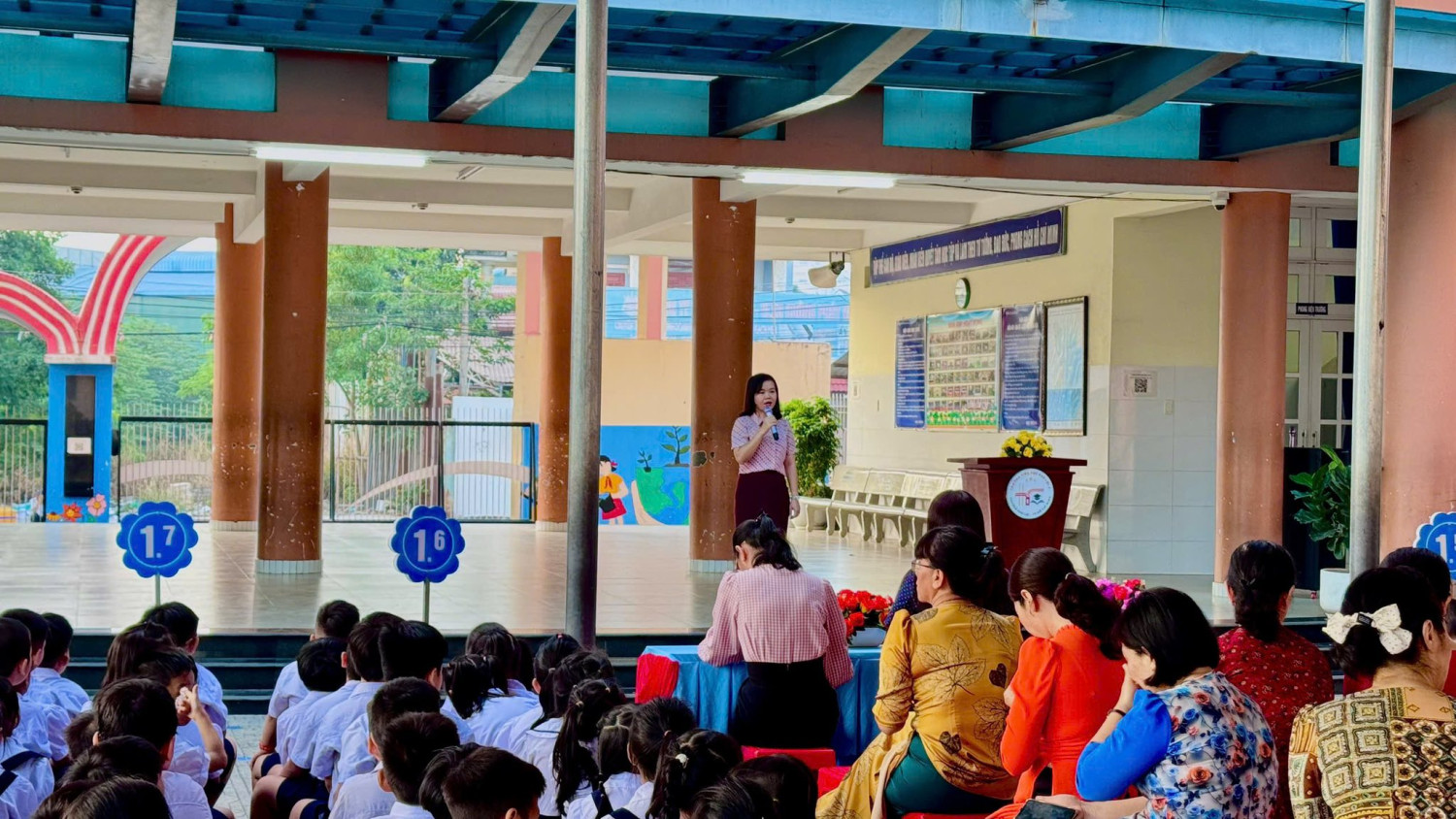 Trong khuôn khổ chương trình nhà trường đã lồng ghép sinh hoạt” Mỗi tuần một câu chuyện đẹp, một cuốn sách hay, một tấm gương sáng”. Đồng thời tuyên dương các tấm gương người tốt, việc tốt vì đã tích cực tham gia giữ gìn vệ sinh trường lớp năm học 2025-2026.
